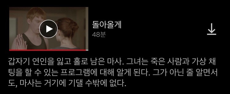 넷플릭스 블랙미러 시즌2 에피소드 1화 돌아올거야.