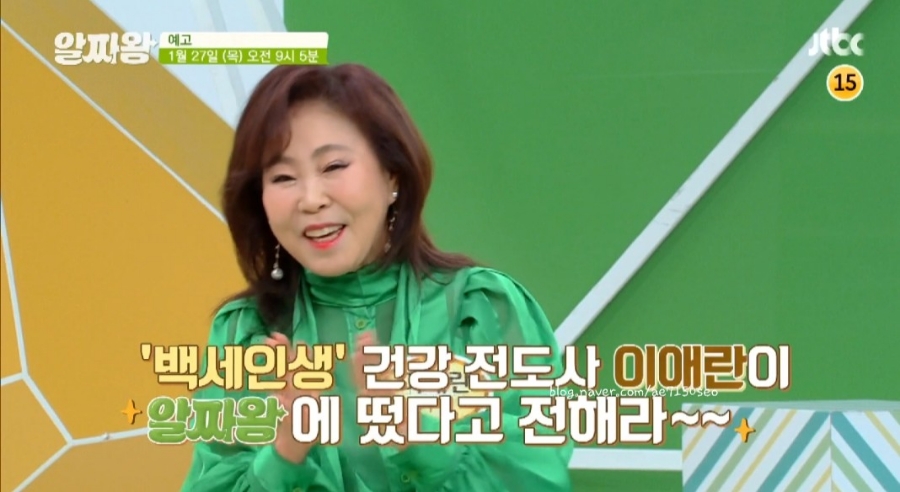 1월 27일 목요일에 방송되는 TV정보쇼 눈알왕 257회에서는 남녀노소 할 것 없이 전해라 패러디를 유행시킨 노래 백세인생의 주인공 가수 이애란이 출연.