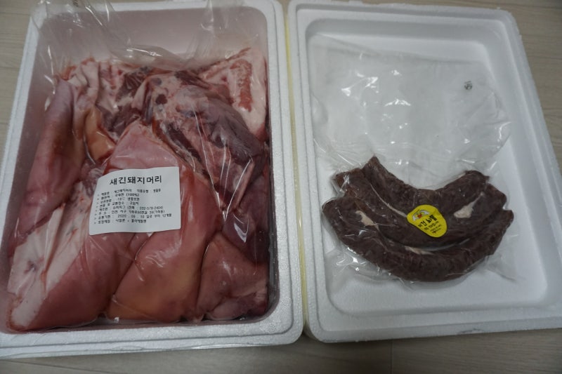 원래 돼지 부산물은 따로 구매하려고 했는데 돼지 내장 세트가 있죠?가격도 적당하고 다양하게 먹을 수 있어서 돈내장세트로 했어요!!하하동네장세트에는 오소리감투 폐렴통 간 소찬+울태가 있어요!오소리 감투와 불꽃통의 양은 적을지도 모른다고 합니다.작지만 다른게 많아서 저는 괜찮았어요!돼지고기는 통과했어요.다음에 꼭 사야겠어요!! 대신 돼지 부산물로 배를 채울게요!!
