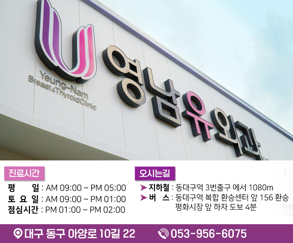 본인에게 해당되는 증상이 있는지, 양성인지 악성인지 정확히 확인하고 싶은 분은 영남유외과에 내원하셔서 정밀검진을 받으시고 결과에 맞는 치료를 진행하시면 됩니다.