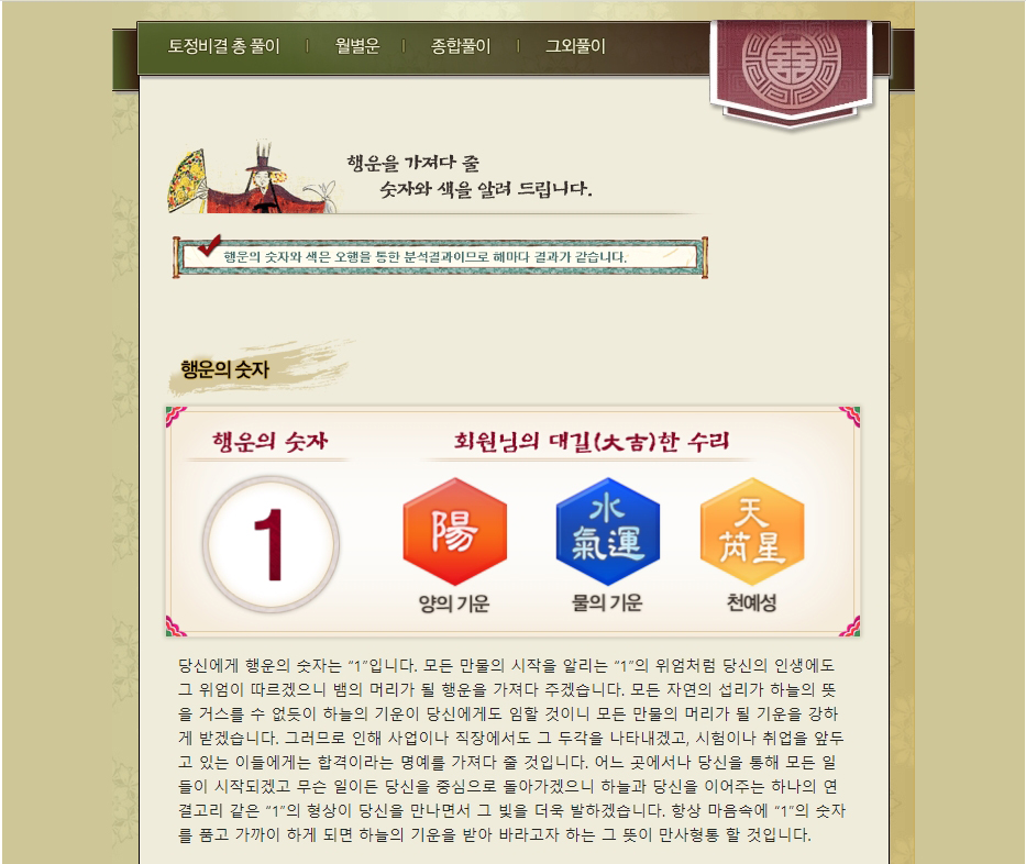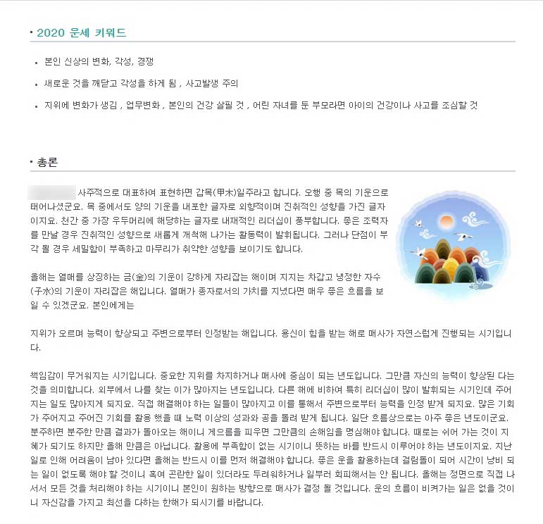 2019년 마지막 날 올린 2020년 무료 신년운세에 이어 2탄에서 그때 소개드린 무료 신년운세 사이트에 하나 더 추가하여 저의 올해의 총운을 직접 보면서 어떻게 구성되어 있는지 소개합니다.
