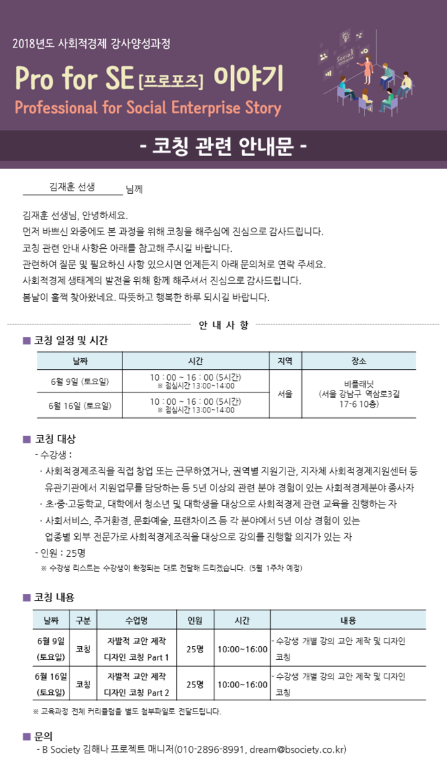 올해 10월에는 재미있는 강연 문의가 자꾸 들어오네요. 얼마 전 OO팀장의 추천으로 제가 살고 있는 지역 두 대학의 연계 과정에서 창업 아카데미 PT 부분 강연 의뢰를 받았습니다.