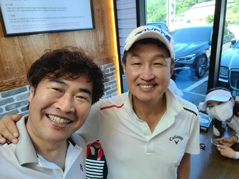 어쨌든 로드힐스cc 랜딩에 나가서 맛있는 점심도 먹고 거기 가수 김범룡 씨도 만나고.