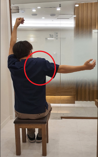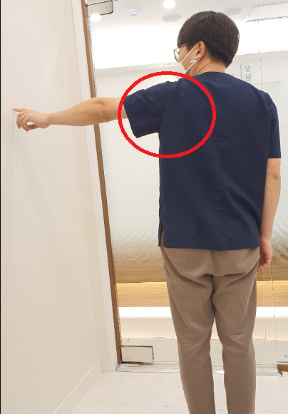 오른쪽 어깨 유착으로 왼쪽만큼 팔을 뒤로 젖힐 수 없다1. 통증이 점점 심해진다.2. 야간에 통증이 제일 심하다.3. 팔의 움직임에 제약이 생긴다.따라서 어깨 통증이 발생하면서 통증이 관절 주변으로 몰리다가 시간이 지날수록 더 강해지면 오십견을 의심해야 합니다. 어깨를 들 수 없는 경우는 매우 확률이 높습니다.