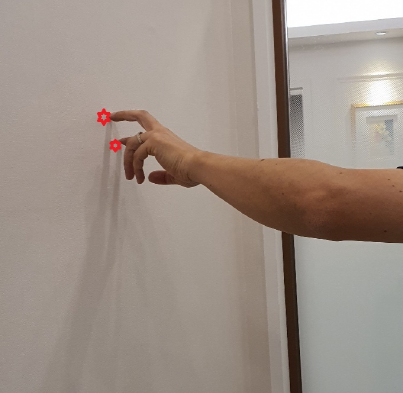 - 가능한 한 팔을 옆으로 뻗고 벽에 손가락을 닿도록 하십시오.2. 손가락을 조금씩 이동하면서 최대치로 표시하여 주십시오.