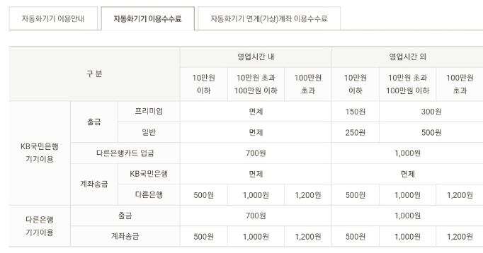 다음으로 수수료에 관한 내용입니다. 같은 은행이나 다른 은행의 수수료가 다르고, 영업 시간이나 시간 등에 다르게 측정되고 있습니다. 따라서 수수료가 아깝다면 해당 은행에서 영업 시간 내에 운영하는 것을 권장합니다.