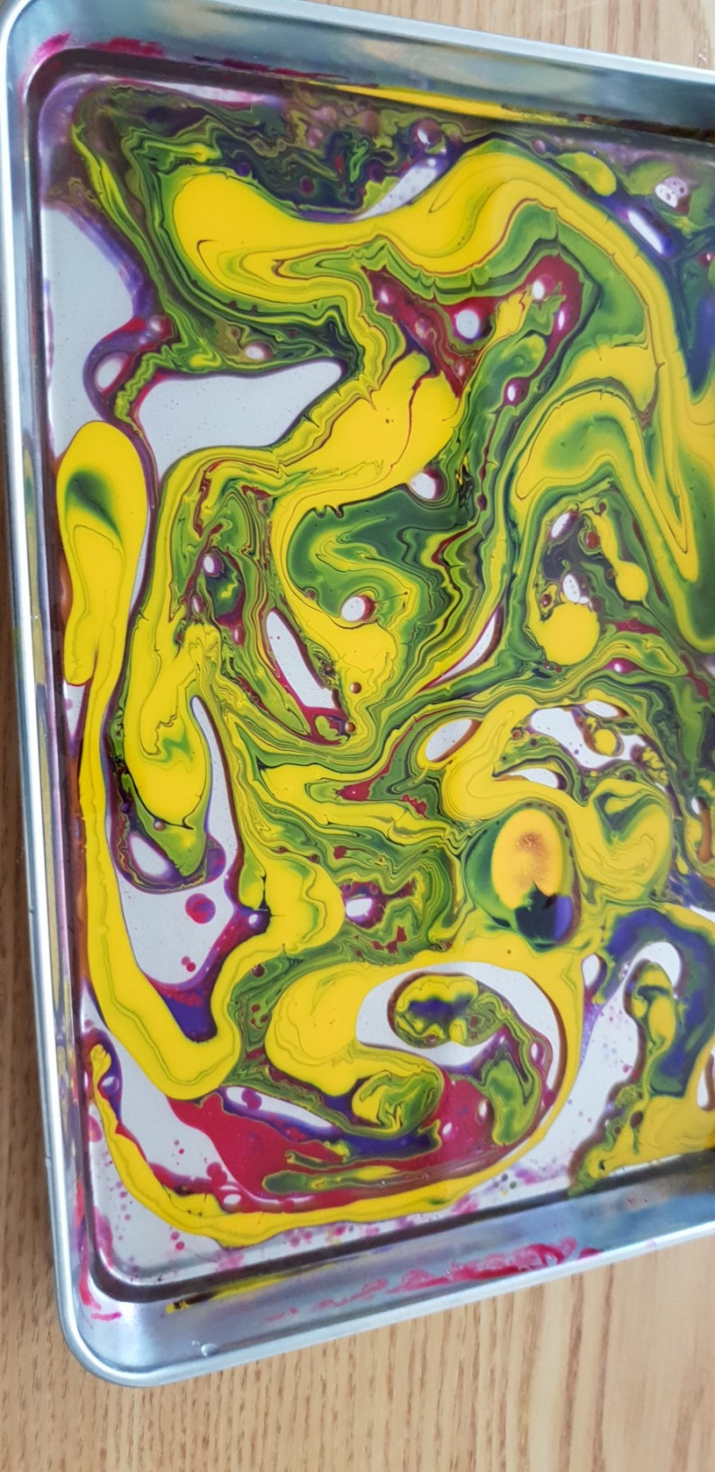 꺼내면 도화지에 물감만 묻어와 ㅋㅋ나무젓가락으로 조심해서 저어보는 유건.아이들이 좀 커서 그런지 손이 잘 안 갔다다른 색으로도 해보고완성된 것은 한쪽으로 펼쳐 놓았다완성된 것은 한쪽으로 펼쳐 놓았다이렇게 완성된 작품 멋있다.이거 잘라서 모빌 만들자고 했는데 아직 안 됐네.