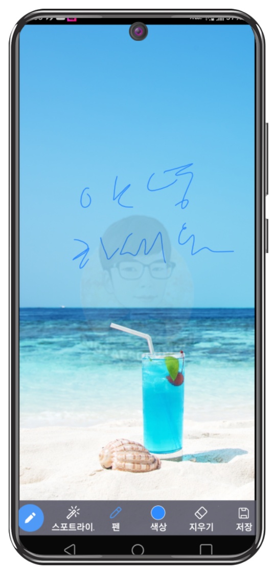 줌 한 배경화면은 화면 형태로 나누어도 좋지만 여기에 메시지를 손으로 쓸 수도 있습니다. 필요한 문구가 있다면 이렇게 펜으로 직접 글을 작성할 수도 있어요. 개인적으로 줌의 사용법이 어렵지 않기 때문에 회의에 이용하면 매우 좋습니다.