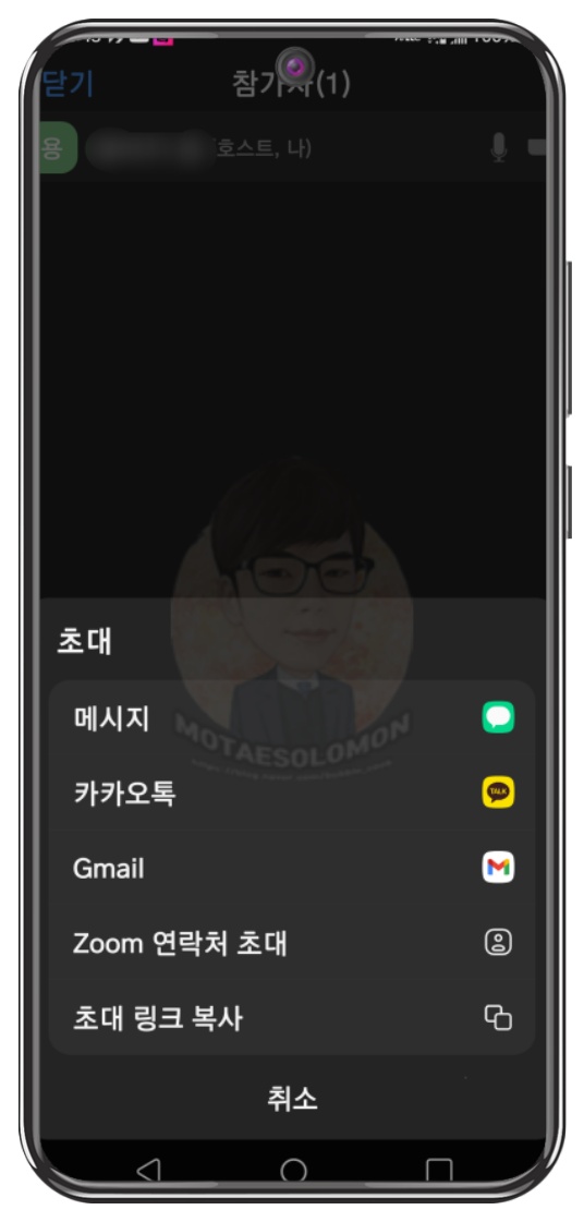 줌의 사용법 중에는, 회의에 출석하기 쉽도록, 메일이나 카카오톡, 링크등을 통해서 간단하게 초대할 수 있습니다. 만약 추가적으로 참여를 원하는 사람이 있으면 이렇게 링크를 보내 주시면 접속할 수 있습니다.