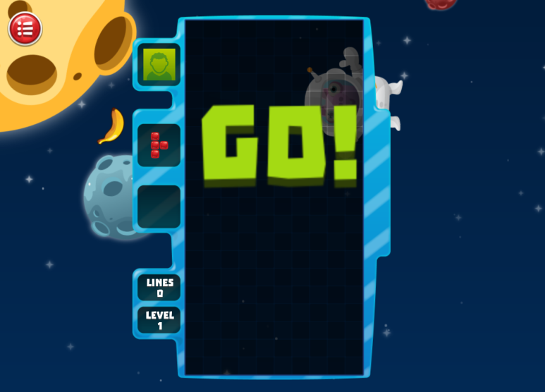 우주복을 입은 외계인이나 바나나들이 여기저기 다니는 우주를 배경으로 합니다 먼저 소리와 음악을 설정하고 모든 준비를 마치면 중앙에 보이는 초록색 재생 버튼을 눌러 게임을 시작하시면 됩니다.