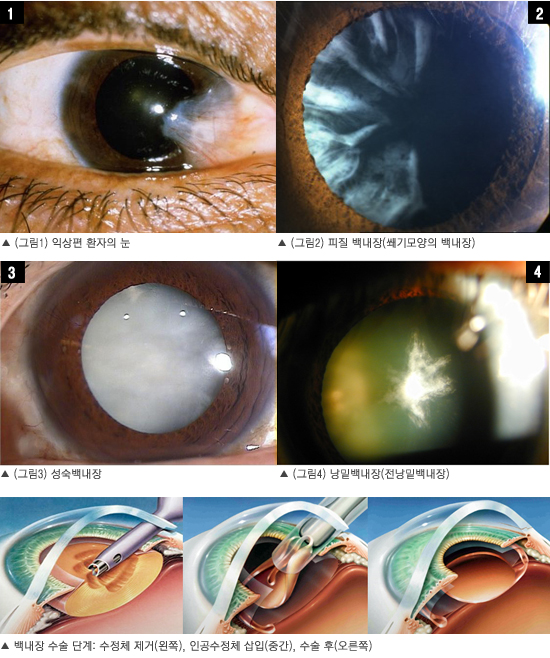 백내장 수정체 치환술 백내장 수술은 기존에 가지고 있던 수정체를 새로운 인공수정체로 교체하는 방법으로 최근에는 레이저 백내장 수술도 많이 시행되고 있습니다. 수술 전 다양한 정밀검사를 하게 되며, 이러한 검사는 수술결과의 성공을 위한 방법입니다. 단순한 시력 검사뿐만 아니라 각막, 수정체, 시신경, 망막 검사를 반드시 하는 것이 좋습니다.