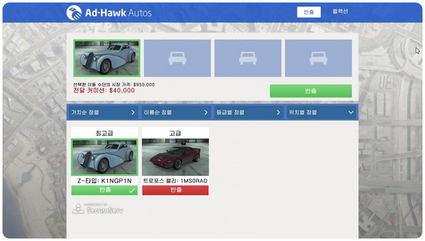 반입 반출 고급차를 훔쳐서 차고에 넣어 파는 임무인데 차의 가치가 올라갈수록 난이도가 높아집니다.
