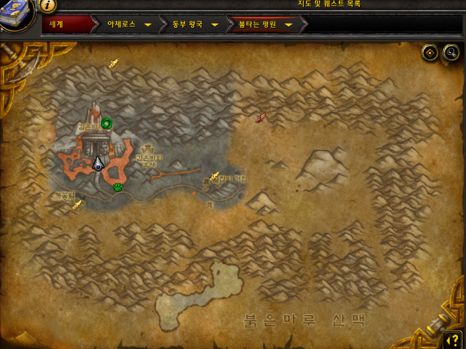 법 (와우, WOW) 월드오 부워크래프트 화산 심장부가 가는 오글리마의 황혼의 고원 포탈에서 좀 더 빨리 화산 심장부가 있는 동부 왕국의 불타는 평원으로 갈 수 있습니다. 여기가 입구예요. 입구에서 화산의 심장부까지 가는 길입니다.