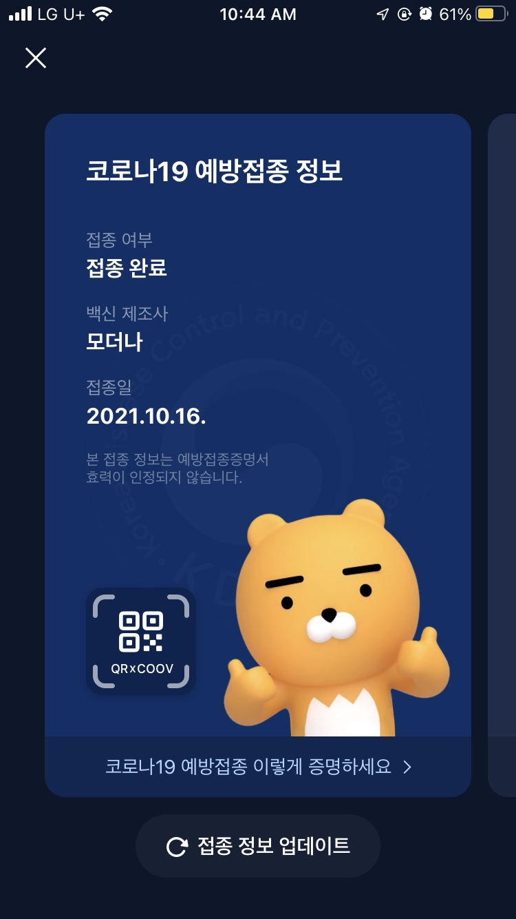 그냥 모다나 접종 후에 기다려 찰칵