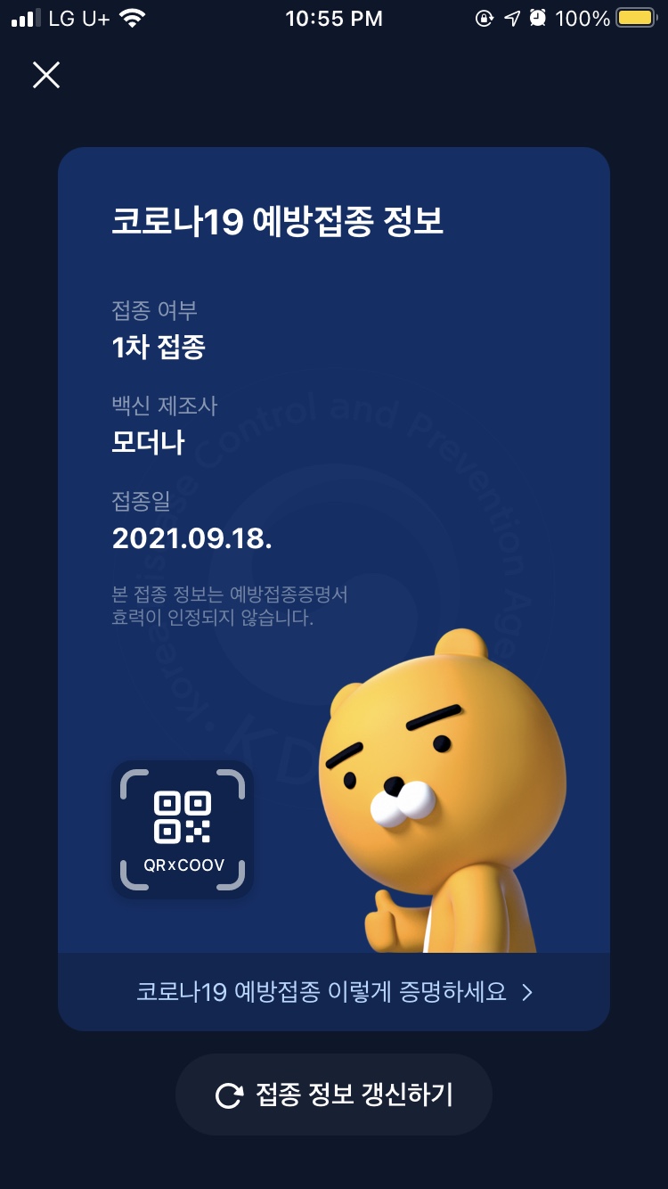 9월 18일 기다리고 기다리던 백신 1차를 맞이했다!