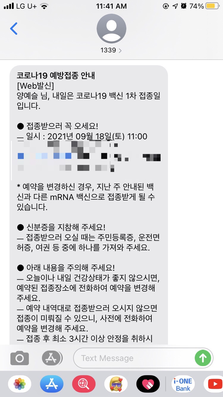 전날 발송되는 문자에서도 다나 혹은 화이자라는 정확한 명칭이 없었기 때문에 파이자다다다다다다다…