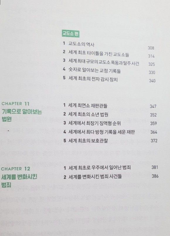 전 세계에서 여성 재소자 비율은 홍콩이 가장 높고 외국인 재소자 비율은 모나코 왕국이 가장 높은 것으로 알려졌다.최장기 징역형 순위라든가 멍청한 범죄자 안내 등은 흥미롭게 읽을 수 있고 도둑맞아 아직 세상에 모습을 드러내지 않았다는 베르메르의 <콘서트>라는 작품은 정말 궁금하다.