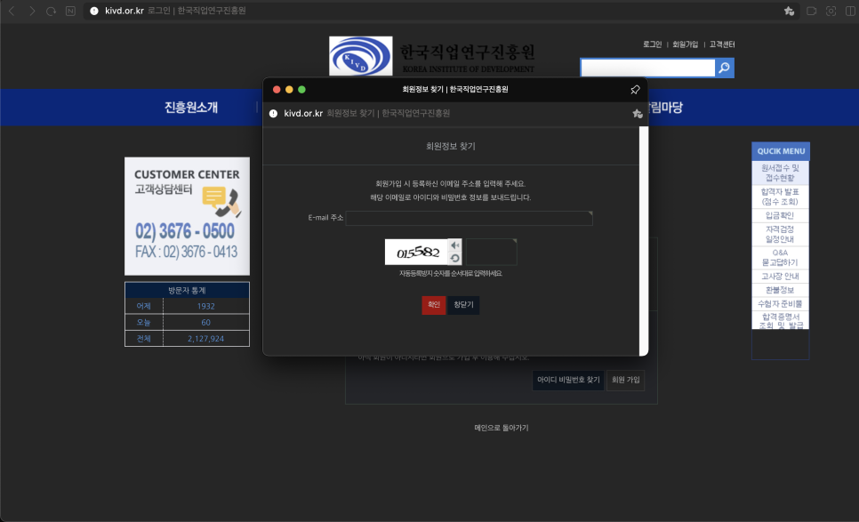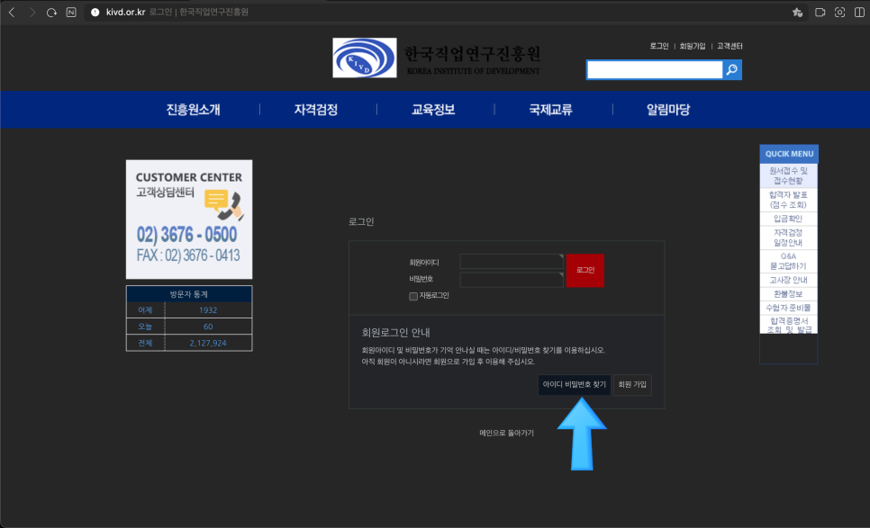한국직업연구원 비밀번호 찾기!