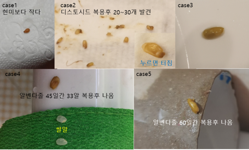 이상 제가 시험해 본 사람은 구충제, 알벤다졸 복용기 종료.