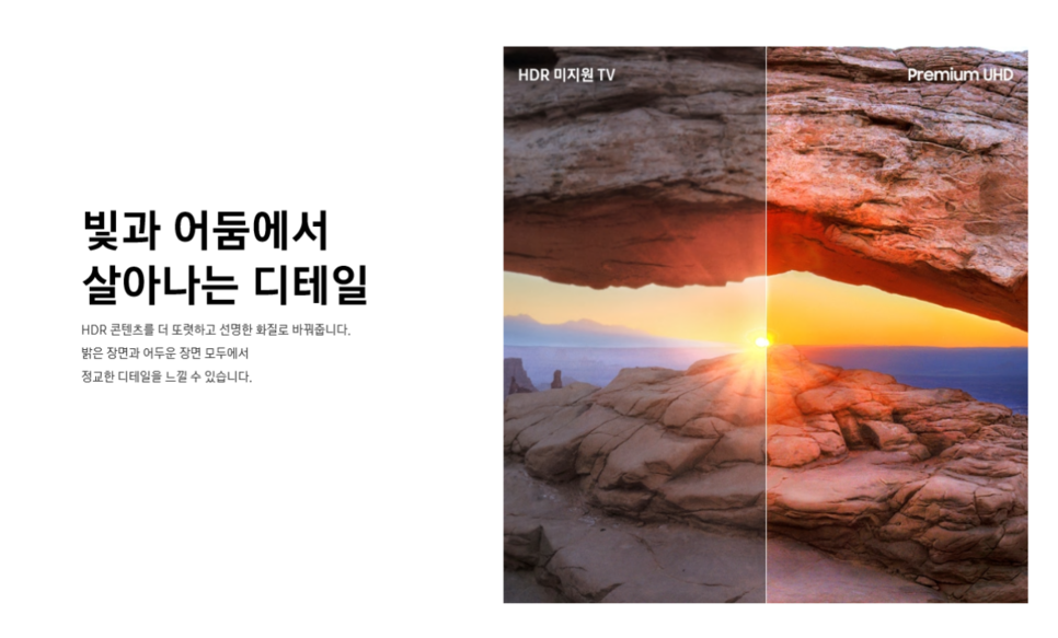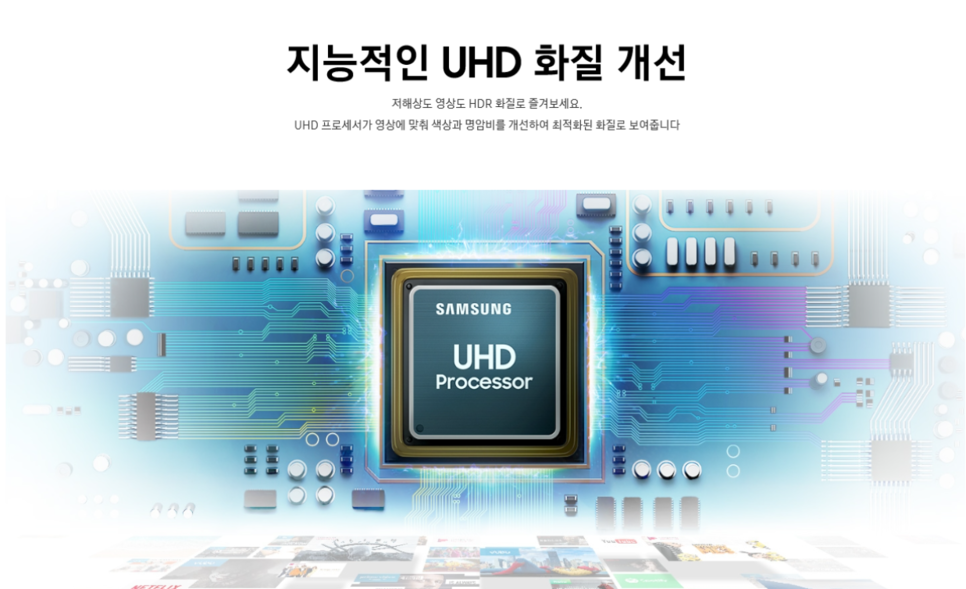 색감이 정말 장난 아닌데요? 제 생각만 그런가요? 삼성 TV의 선명한 색상이 나에게는 먹방을 보기 딱 좋네요!UHD 프로세서가 영상에 맞게 색상과 명암비를 개선하여 최적의 화질로 영상을 보여줍니다!