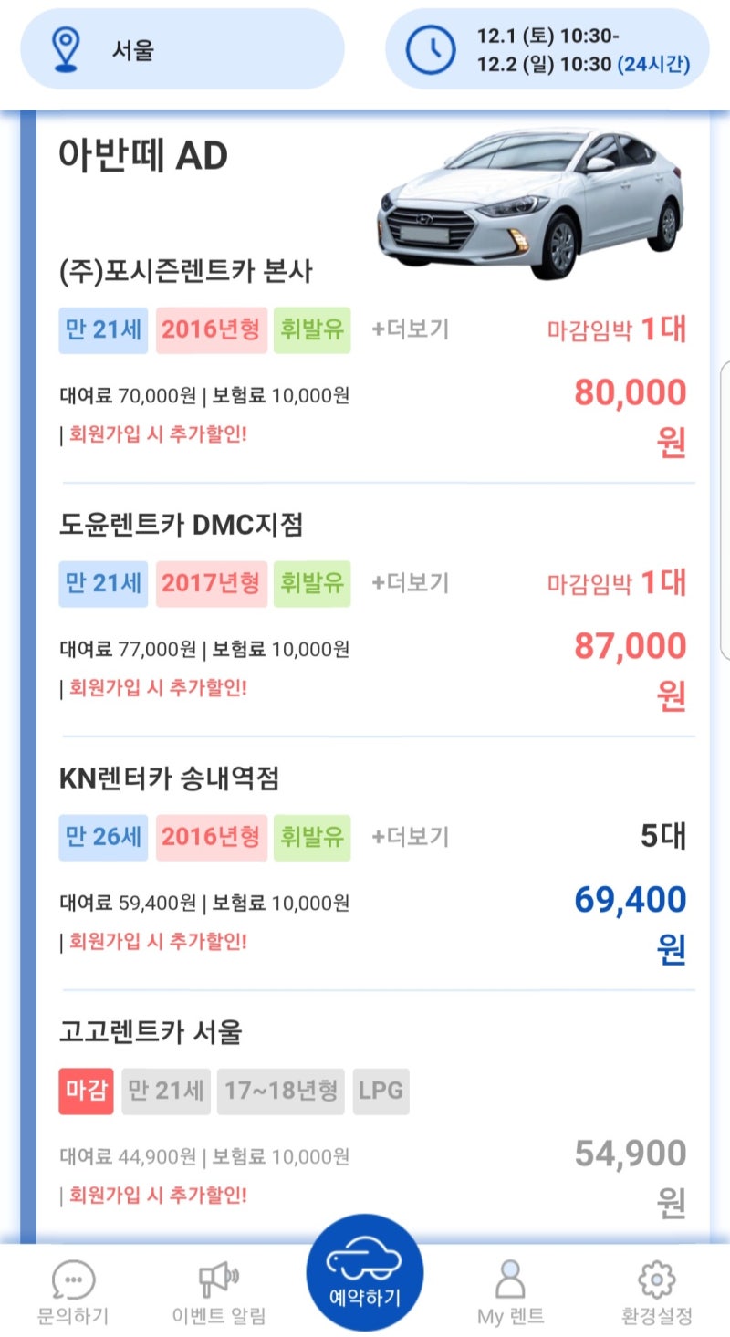 그래서 항상 렌트카를 이용하는데~ 이번에는 카모아를 이용해봤어요. 주변에서 자주 사용하고 있었어요?가격비교를 어플로 할 수 있어서 편하더라구요.