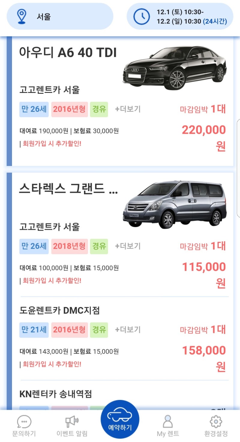나는 서울역에서 내려서 렌트하기 때문에 지역을 서울/KTX역으로 선택했어요.카테고리에 없는 지역이나 역은 맨 아래 검색창에서 찾을 수도 있습니다.