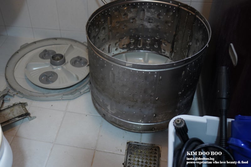 음.. 그런데.. 이틀이 지나도 전화가 오지 않았어요.3일째 됐을 때도 안 와서 제가 직접 전화를 드렸어요그래서 바로 연락이 온 거예요.고객센터에서 지역 매니저에게 바로 연락을 했는지 곧 연락이 와서 날짜를 잡았습니다.나도 바쁜데 예약 전화가 오는지 체크하고 오지 않았다고 직접 전화해야 하는 게 불편해서 별 5개는 못 주는 유일한 이유가 조금 아쉬웠어요.실제 세탁기 청소 과정의 청소부는 예약한 시간에 맞춰 왔습니다.우리 집 세탁기는 욕실 안에 있는데 여기서 분해 청소 재조립의 모든 과정을 거쳤습니다.저는 청소가 되어 있는 동안 다른 일을 했어요.중간에 기사님이 불러서 보여주셨어요. 예를 들어 분해했을 때 내부 세탁조 및 세탁기 구조물 등의 상태를 보여주고 청소한 후 깨끗해진 상태를 보여주었습니다.한시간 정도 걸렸나?분해와 재조립 과정이 있어서 시간은 좀 걸렸어요.그런데 말이죠.나름 셀프 세탁조 청소, 세탁기 청소 열심히 주기적으로 하신 거예요?저희 집에 필요한 도구와 세제도 모두 준비되어 있습니다.그런데 막상 분해해서 열었을 때 충격이라니…제가 지금까지 청소한 게 뭐.. 여기에 계속 빨래를 하고 있었다는 건가 싶어서요.