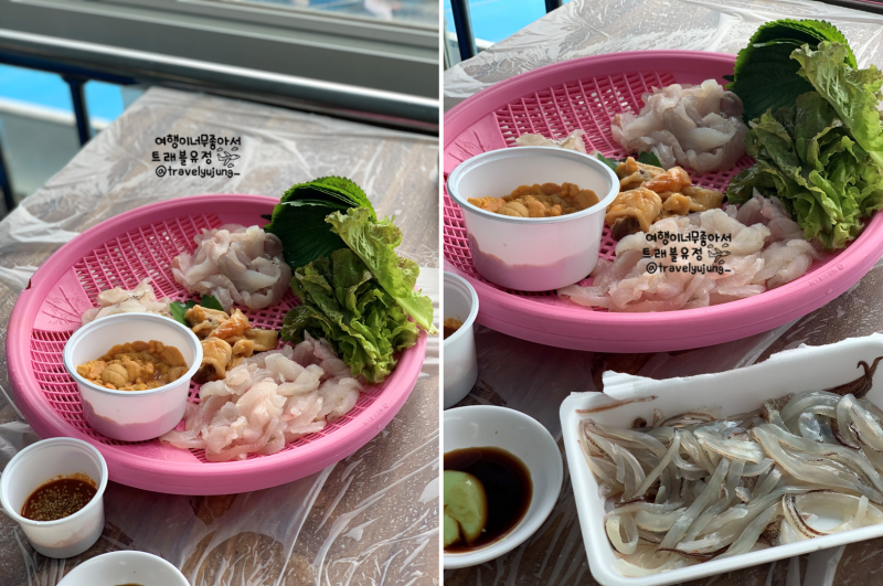 낮에 오징어회를 먹지 않으면 수협 앞에 있는 오징어 난전을 가려고 했는데 사람도 많고 가격도 나쁘지 않은 것 같아 유람선 야식 부두 식당 길 건너편인데 오전부터 사람들이 많이 보인다.어민들이 직접 하는데 저녁 일찍 문을 닫는다고 한다.