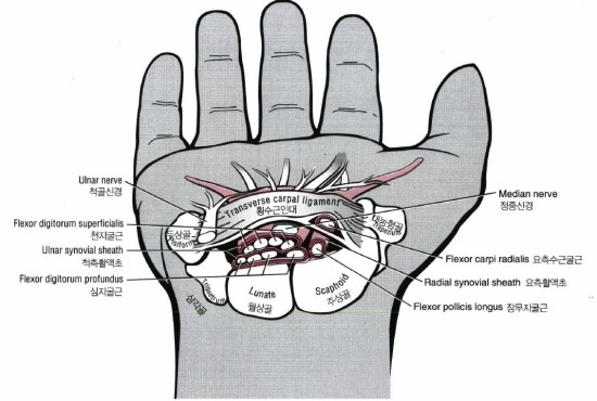 정중신경(Mediannerve)도 운동신경+감각신경이 섞여 있는 신경입니다.