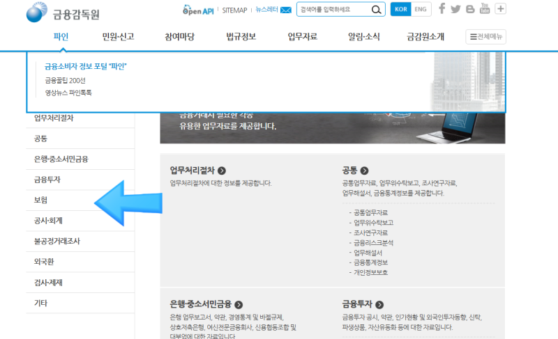 해당 링크를 클릭하면 금감원 보험전문가 등록 여부 조회 사이트에 접속됩니다.