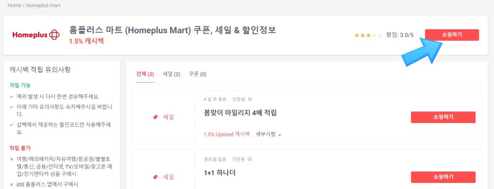 샵백으로 포인트를 주는 법