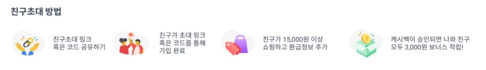 ① 초대받은 사람 1만원 + 초청한 사람 1만원입니다 ②쇼핑백을 경유하여 물건을 3만원 이상 쇼핑하게 되면 포인트가 적립 ③포인트는 바로 받는 것이 아니라 본인이 쇼핑한 후 적립한 포인트가 5000점 이상이어야 환불이 가능합니다.