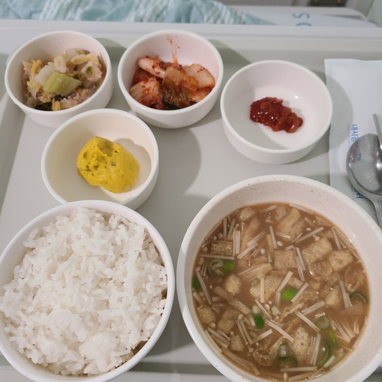 먹고 자고 자고 5시가 돼서야 밥이 나왔다. 통증은 아직 없다.