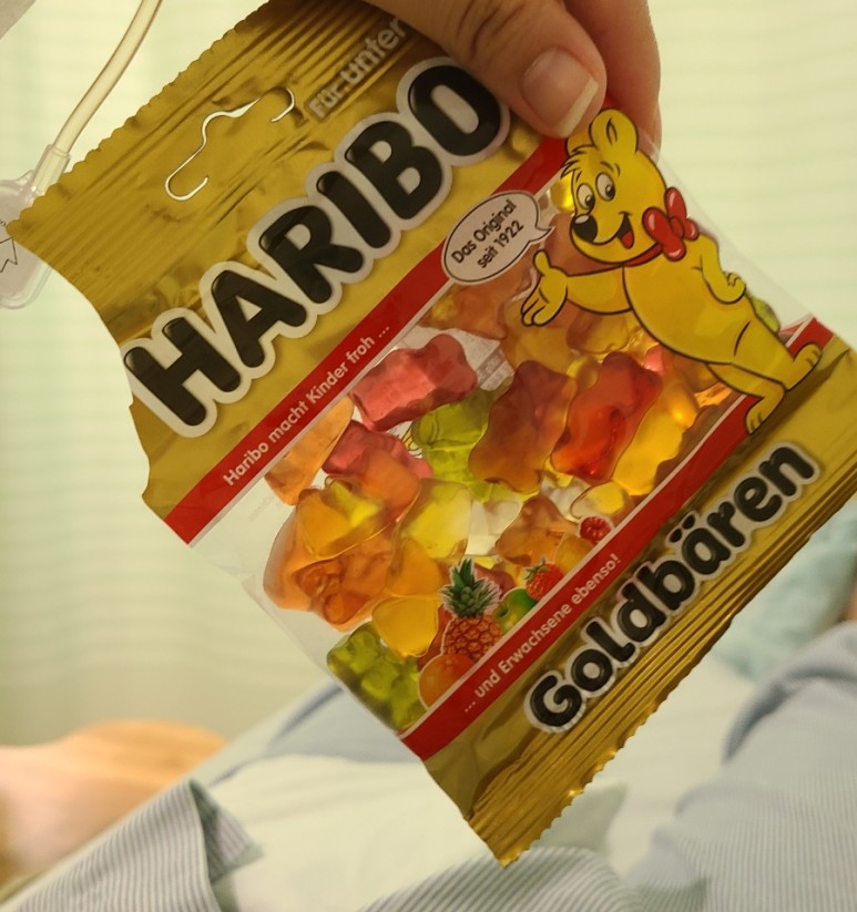 응 건강식^.^ 냐미냐미야미에서 방금 사온 하리보를 까는 하리보 간식으로 최고야