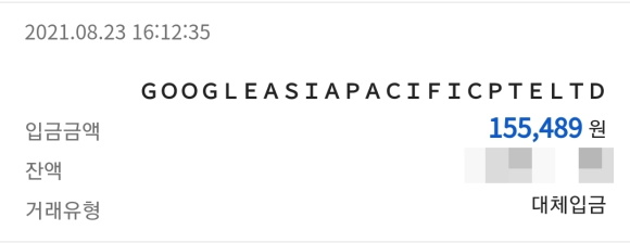 2021년 8월 23일에 구글에서 15만원 정도를 입금하셨습니다.