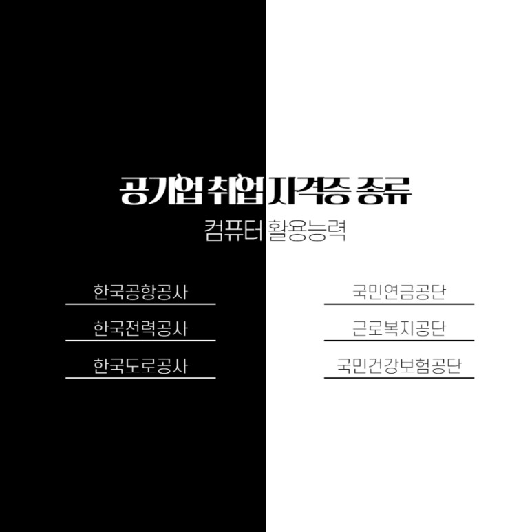 그러면 이번에는 공기업 취업자격증의 종류에 대해서 본격적으로 알아보도록 하겠습니다