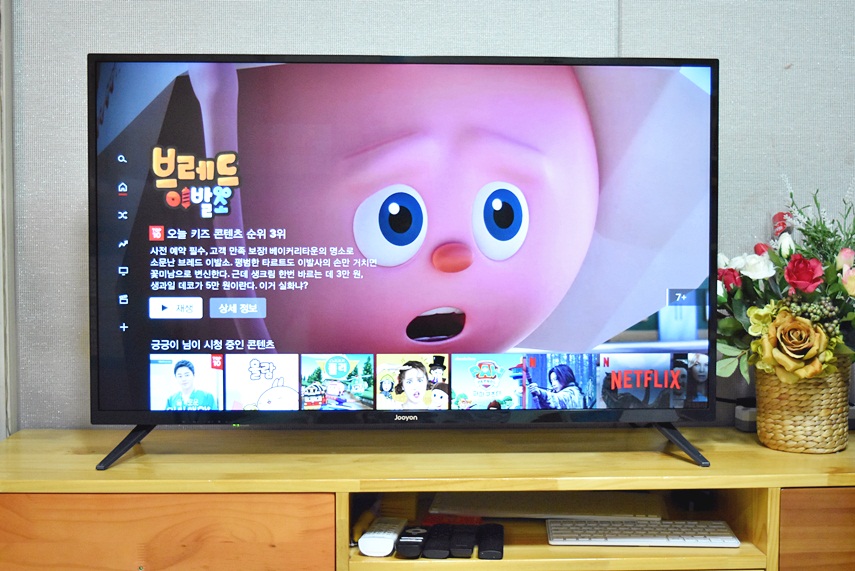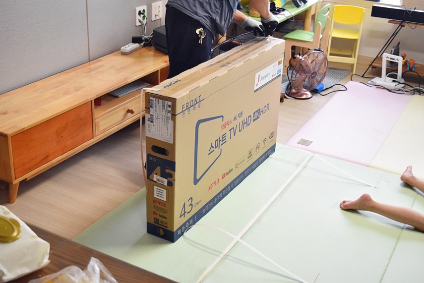 아이들이 집에 있는 시간이 길어짐에 따라 컴퓨터로 부팅하여 유튜브를 시청하려고 하니 매우 불편했습니다. ㅠ 핸드폰을 주면 시력이 더 나빠지는 것 같아서.. 그래서 이번 기회에 주연전자 스마트TV이지만 4K대응하는 UHDTV이지만 넷플릭스까지 탑재된 모델이라 집으로 모시게 되었습니다 ㅎㅎ