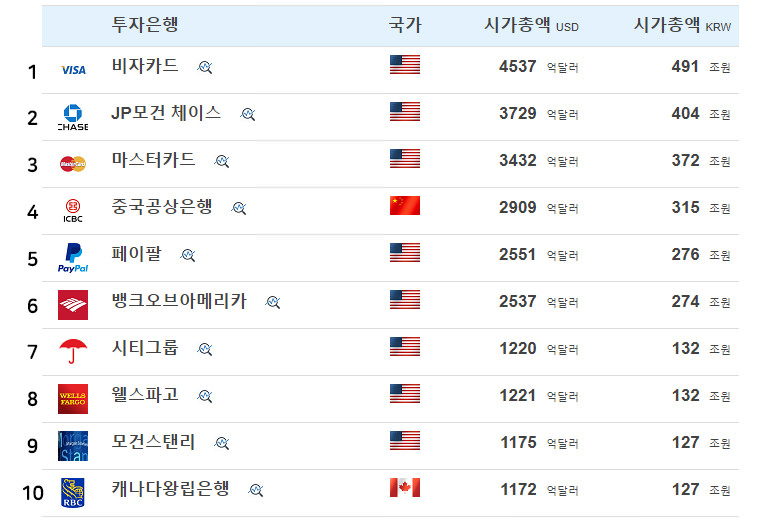 그 외에는 역시 사우디아라비아의 아람코! 신의 직장으로도 유명하지만 시가총액이 4위.