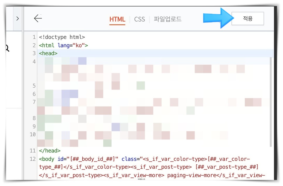 누르면 뭔가 복잡한 화면이 보일 것 같은데 필요 없이 오른쪽 상단에 ‘html 편집’을 눌러주세요.