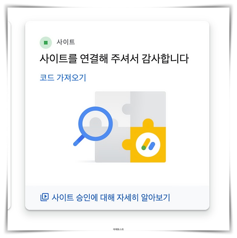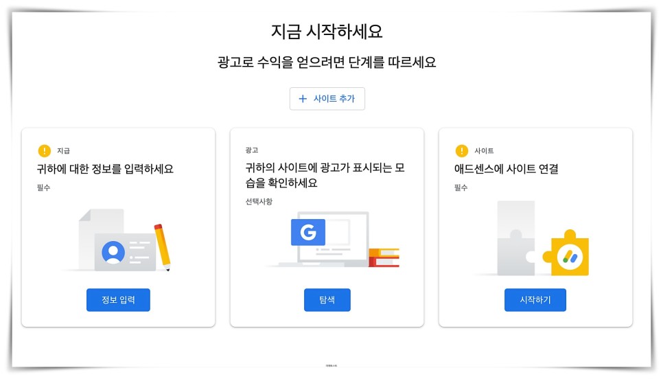 연결하면 ‘지금 시작해 주세요!’라고 뜨네요.정보입력,사이트추가를모두해주세요.