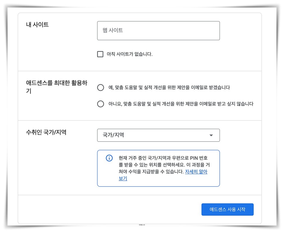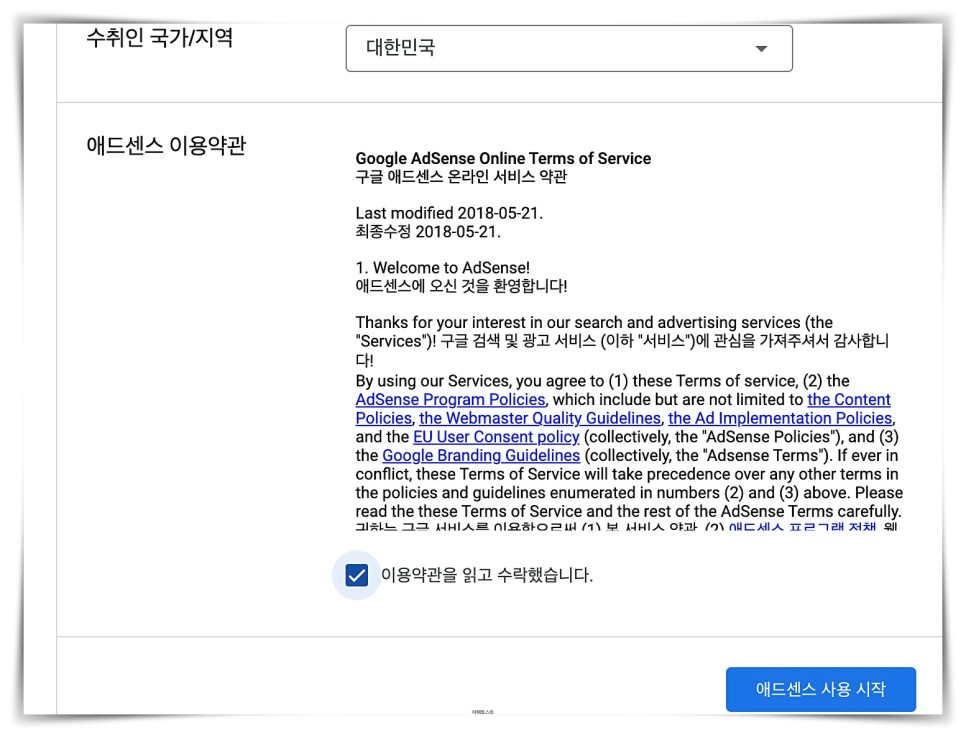 어려운 건 없어요. 점점 내려가서 어드센스 사용 시작까지 눌러주세요.