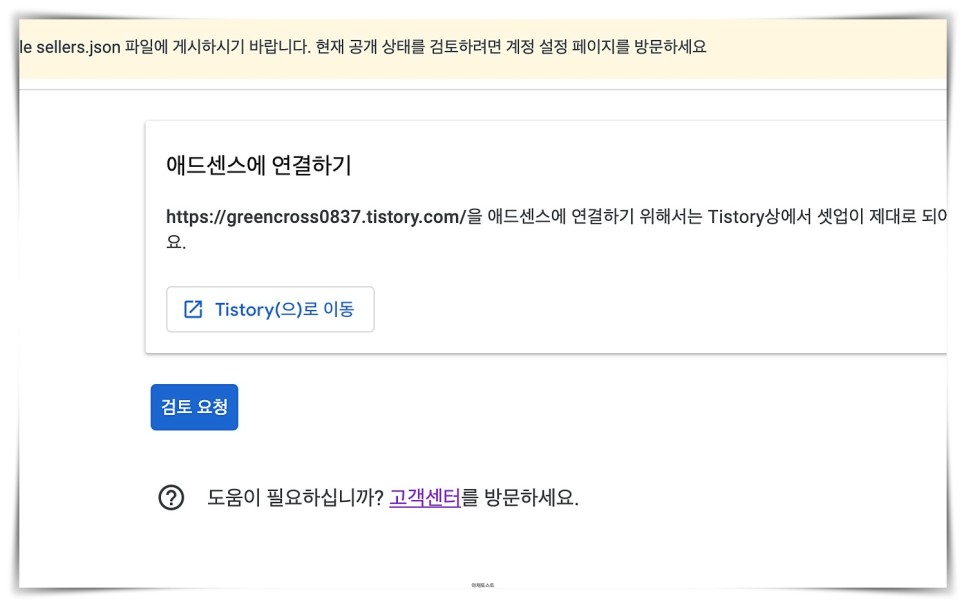 검토 요청에 들어간 제 티 스토리 블로그 메인 화면으로 들어가세요