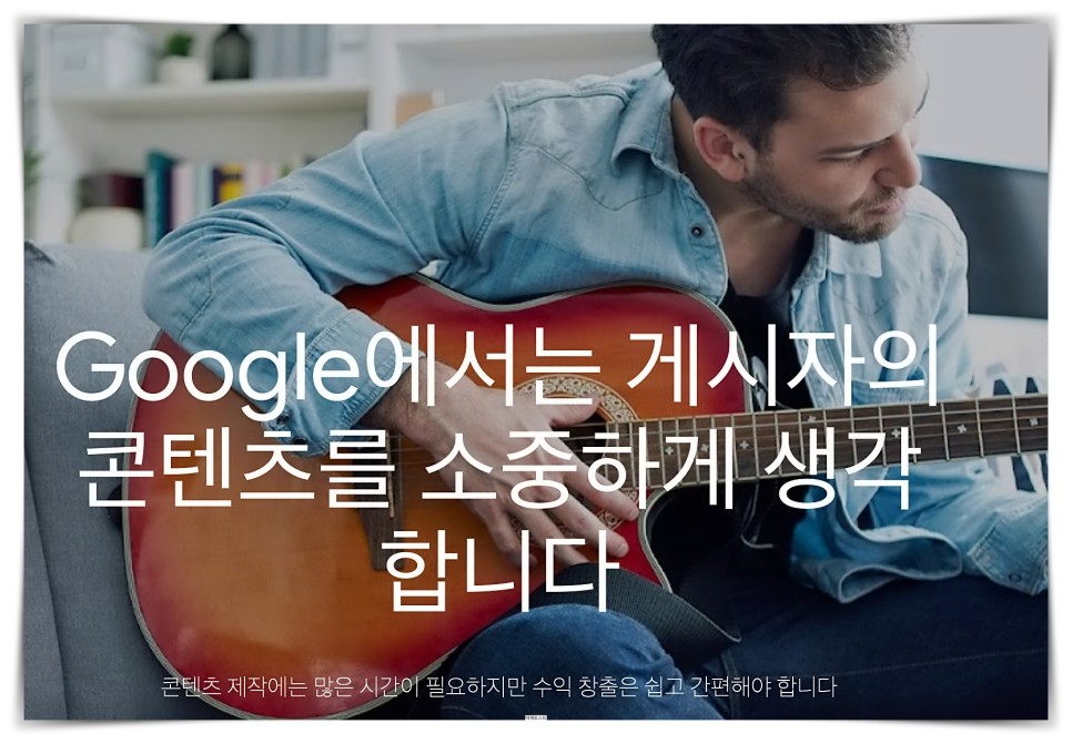 화면에 들어가면 콘텐츠 제작에는 많은 시간이 필요하지만 수익 창출은 간편해야 한다고 쓰여져 있는 것을 확인할 수 있을 것입니다.