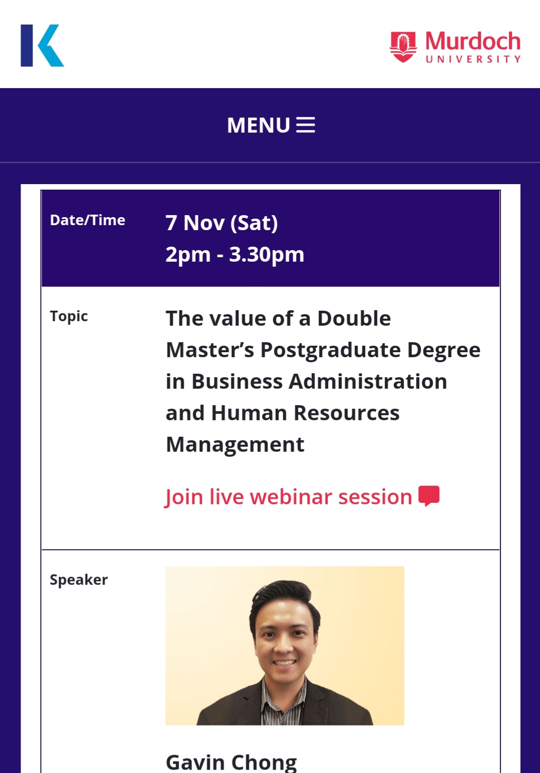 머독대 온라인페어 – 웹세미나 3월 1일~6일 오전 11시~오후 5시. 더블 메이저. 메리트를 배증.murdochfair.kaplan.com.sg