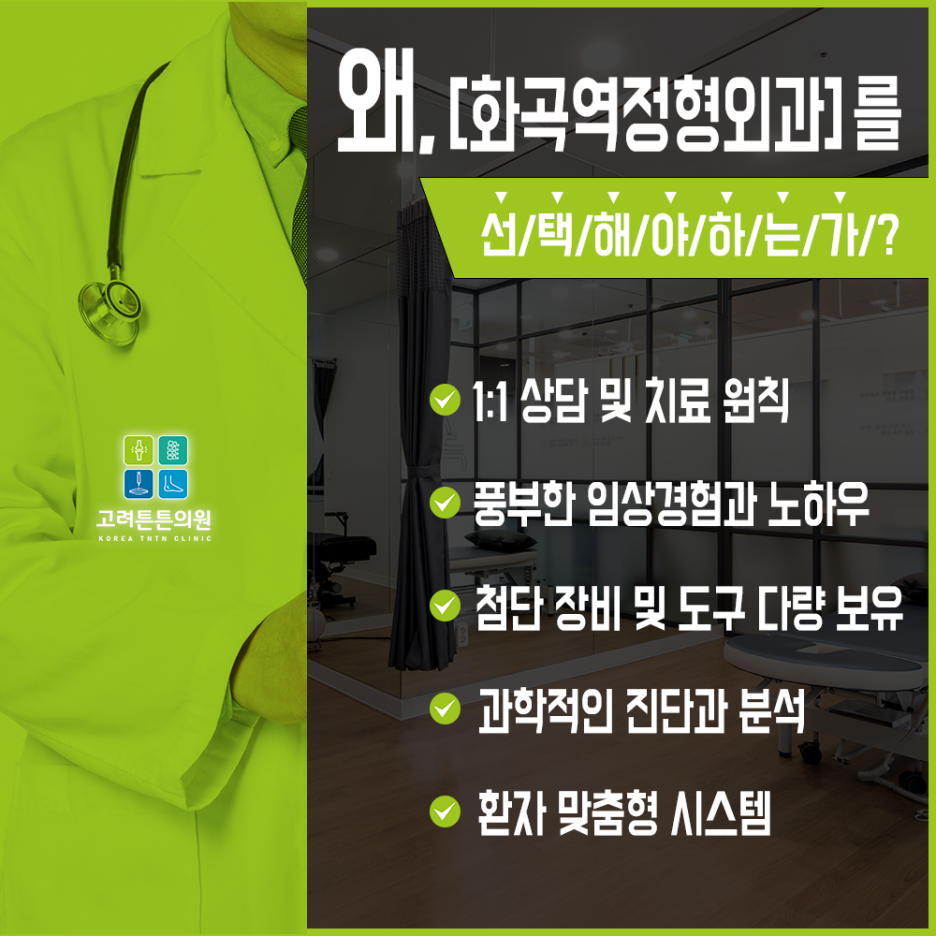 화곡역 정형외과는 비수술적 치료법으로 치료 가능한 질환에 대해 무리를 하지 않습니다. 하루빨리 치료를 마치고 일상생활로 돌아갈 수 있도록 모든 의료진이 한마음으로 최선을 다하고 있습니다.