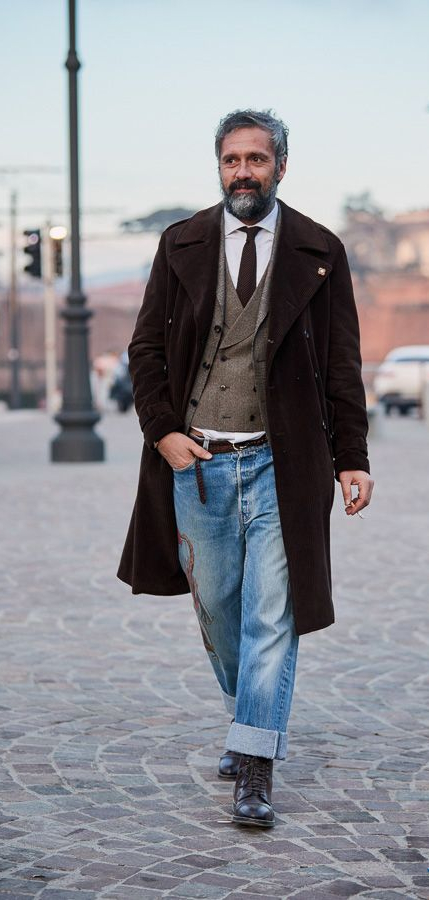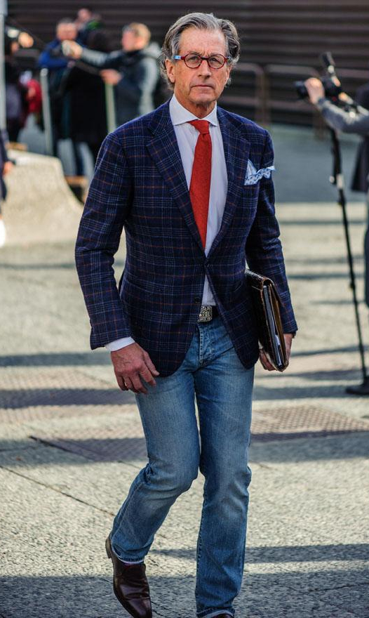 캐주얼하면서도 격식있는 데님팬츠 조합이 가장 품격있는 중년남성의 멋을 보여줄 수 있습니다.