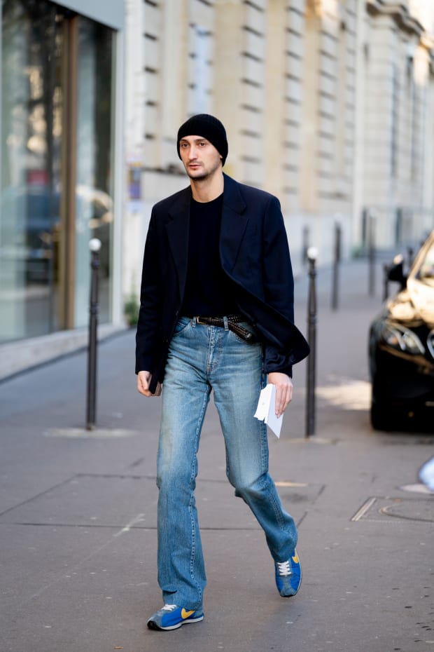 진한 컬러는 데님이 주는 투박한 이미지를 한층 더 낮춰줍니다.3. 테이퍼 실루엣을 선택할 것.