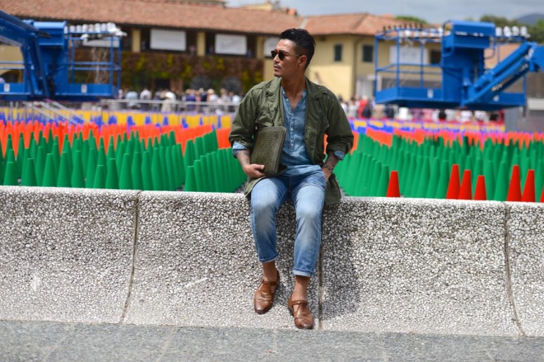 셀비지가 보이게 연출해주면 밑단에 자연스러운 포인트가 생겨요.살짝 드러난 발목의 외로움을 채워주는데 가장 효과적인 방법입니다.