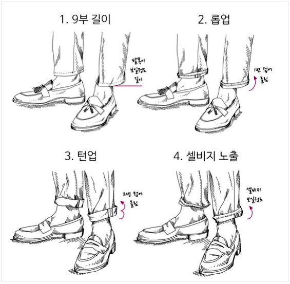 태생은 작업복이었지만 지금은 다양한 스타일로 패션을 만들어갑니다.4. 바지끝에 발목이 살짝 드러나도록