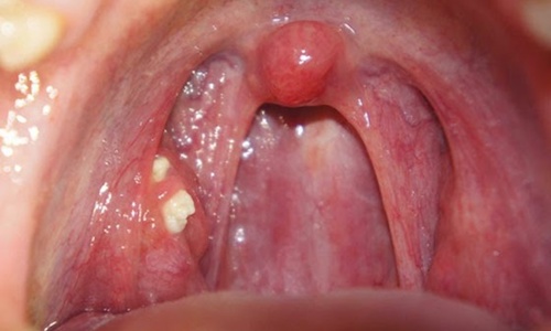 편도 결석의 경우는 주로 “목에 이물감이 있습니다. 뭐가 걸린 것 같아요 마치 가시가 걸린 것처럼요. 이를 닦고 거울을 보면 편도선에 노란 것이 있습니다.’ 이런 표현을 하시면서 내원하십니다. 다음 사진에서는 우측 편도에 2개의 한쪽 결석을 볼 수 있다.